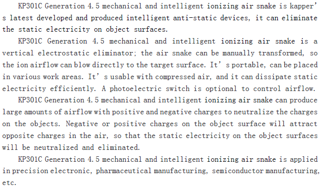 KP301C Generation 4.5 mechanical and intelligent Ionizing air snake