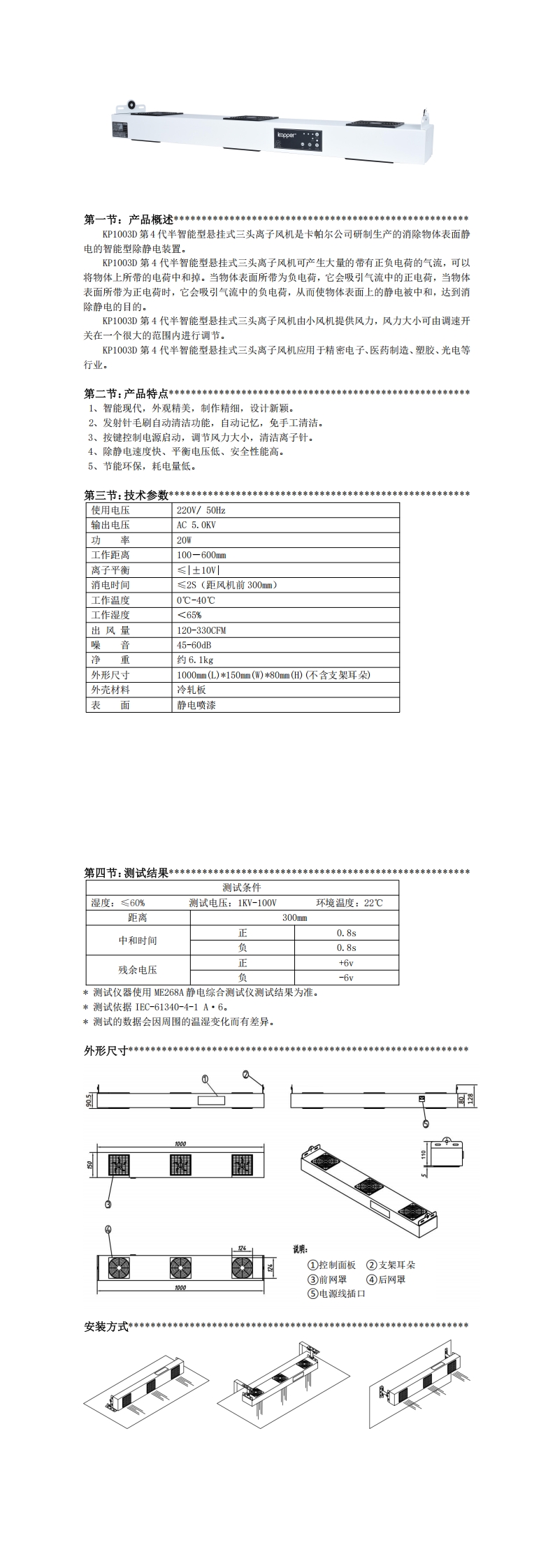 KP1003D第4代半智能型懸掛式三頭離子風(fēng)機(jī)