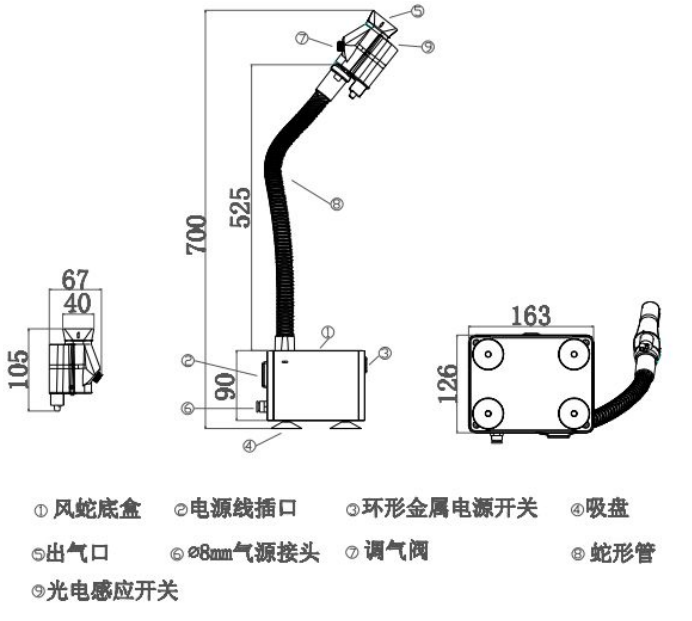 7、電源與蛇身采用一體化設(shè)計(jì),節(jié)省空間。